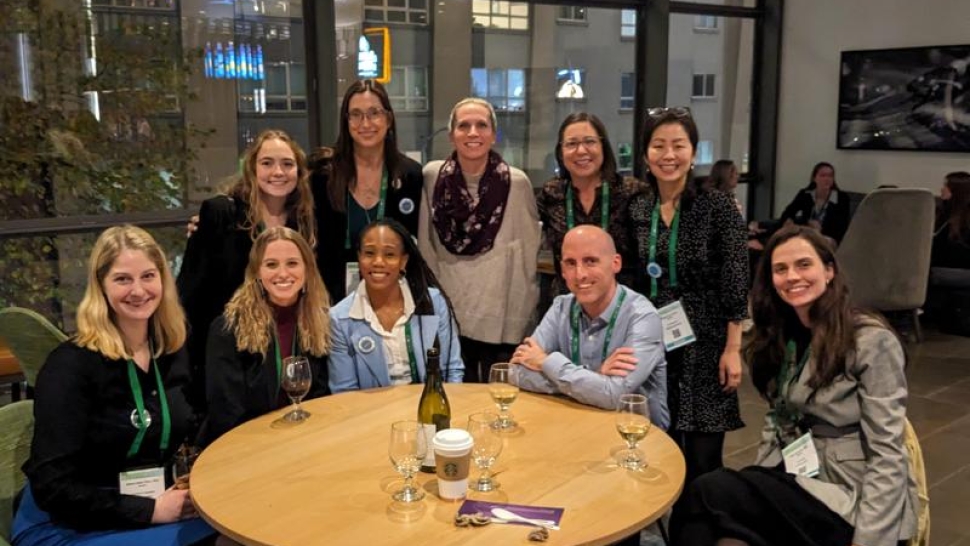 Back row from right to left: Mason Fraser '24; Carolyn Becker, Ph.D.; Lisa Smith Kilpela '04, Ph.D. (faculty at UT Health San Antonio); Anna Ciao '04, Ph.D. (faculty at Western Washington University); Nancy Liu '04, Ph.D. (faculty at UC Berkley).