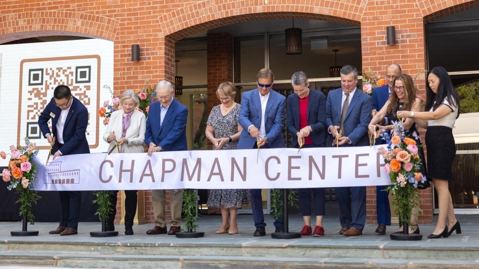 “The memories I have made with my faculty adviser, Dr. Mario Gonzalez-Fuentes, and my classmates in the Michael Neidorff School of Business and beyond have only strengthened my own story, which I am honored to add to the new chapter of the Chapman Center,” says Gabriela Salgado ’25, the emcee of the reopening ceremony and a student currently taking advantage of the renovated building.