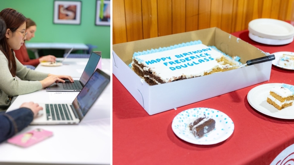 Participants transcribed various primary documents on the first floor of Coates Library while enjoying cake and listening in on a livestream program featuring lectures, discussions, and interviews focusing on Black history.