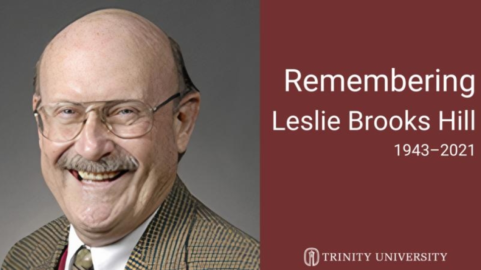 Trinity University speech and drama professor Leslie Brooks Hill died on July 27, 2021. Hill joined Trinity University as chair of the speech and drama department (now human communication and theatre department) in 1988, teaching Tigers for a quarter of a century until his retirement in 2013.