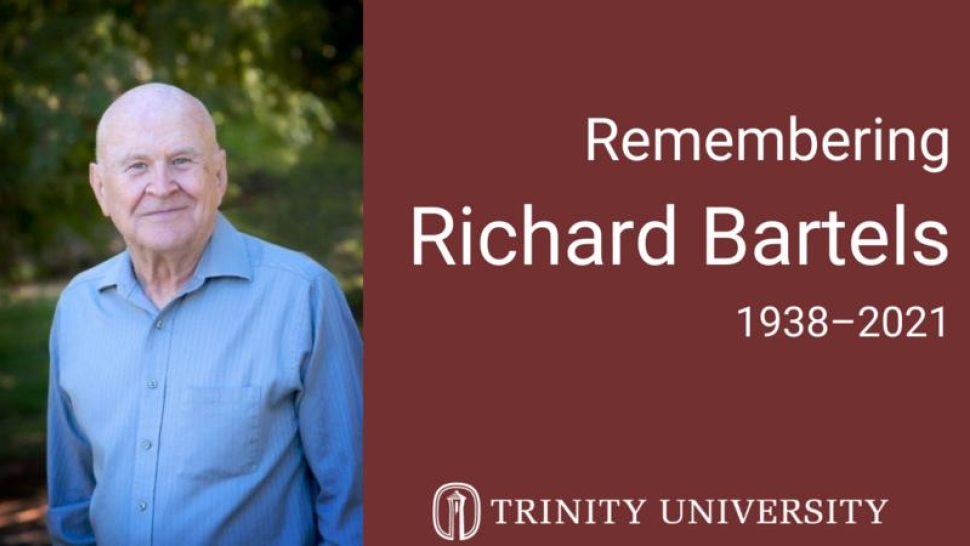 As a teenager in chilly Saginaw, Michigan, Richard (Dick) Bartels made a major vocational decision. He wanted to be a physics teacher in a small liberal arts college situated in a warm climate. Bartels earned three degrees in physics from Case Institute of Technology in Cleveland, Ohio. His interest in classical music flourished in college where the Cleveland Symphony Hall was adjacent to the campus. (Little known fact: He once earned a dollar serving as one of the spear carriers in a Met production of Aida.) After finishing his Ph.D. in 1964, Bartels attended Princeton University on a two year post-doctoral fellowship in an engineering program studying high pressure effects on various materials. In 1966, he accepted an offer to teach in the Department of Physics at Trinity, a position he retained until retirement in 1999.
