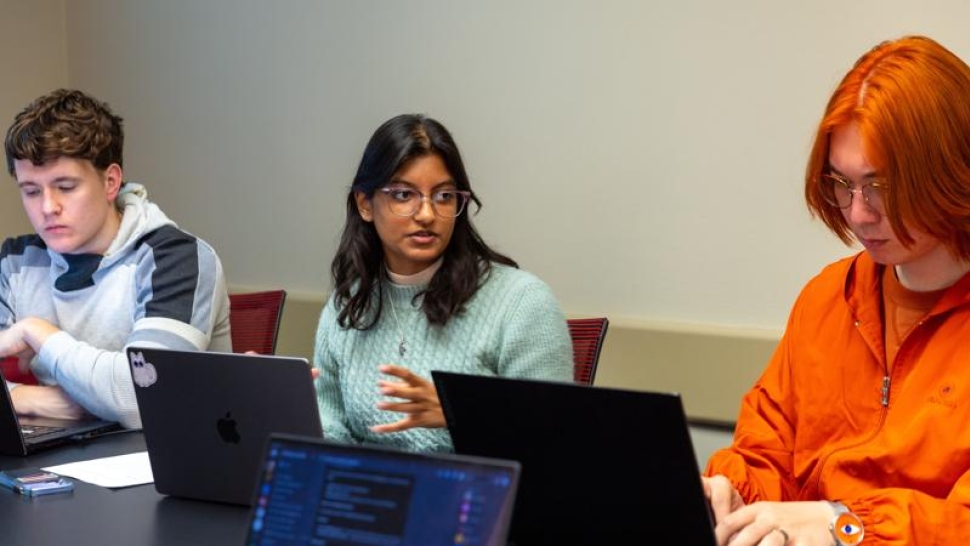 An Austin native, Rajamony is also combining these interests in her extracurriculars. She is a member of the Trinity University Women in Computing organization and Trinity Mock Trial, a facilitator for the Student Integrity Panel, and an undergraduate researcher in the AI lab of communication professor Althea Delwiche, Ph.D. The lab is examining the media coverage of AI.