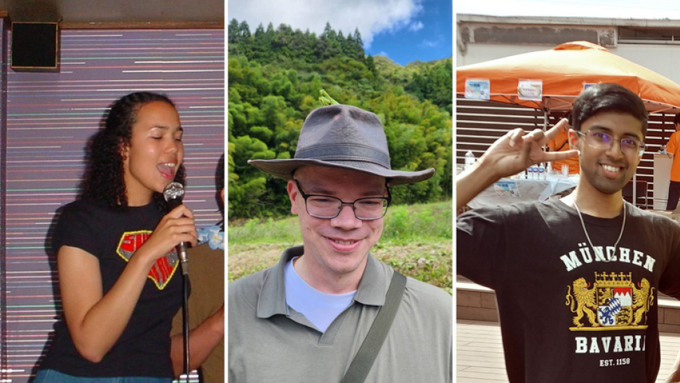 Menezes leads a busy life outside of the classroom. On Wednesdays and Fridays, he goes to Japanese conversation lessons at a nearby community center. His weekends are spent hanging out with his friends, hiking and traveling around Northern Osaka, and going to local events and festivals.