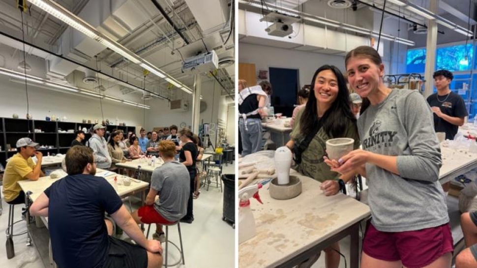 The course seeks to give students the skills they need for academic and professional success, as well as skills that help them enhance their personal well-being, according to Persellin. This semester, the students have had a variety of topics and experiences with various alum and professors at Trinity, including a personal finance session with Siro Gutierrez ’05, MBA, an alum and senior vice president at Bank of America; a yoga session with Trinity instructor Colleen Hill; a team building escape room exercise planned by Trinity accounting professor Stephen Stewart, Ph.D.; a pottery class with Trinity art professor Kate Ritson, MFA, and many more.