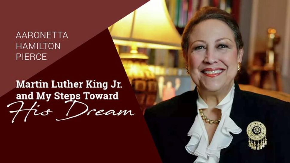 Trinity University welcomes Aaronetta Hamilton Pierce, an African-American arts advocate and civic leader, as the speaker for the 2024 Martin Luther King Jr. Commemorative Lecture. Pierce will deliver the lecture, “Martin Luther King Jr. and My Steps Toward His Dream,” in which she will revisit King's story, its impact on her life and work, and the origins of San Antonio’s nationally recognized celebration of Dr. King.