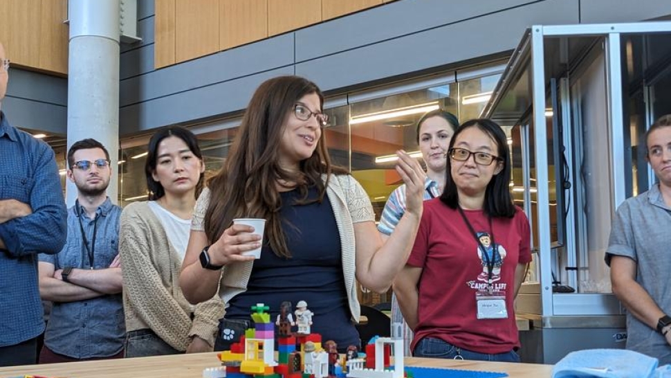 What does (or what can) a community of learning look like at Trinity University? This prompt was used during a Lego brick workshop on the final day of New Faculty Orientation. Some groups of new faculty presented models with multiple doors because there are countless entry points into this community. One group purposefully had a single door because from the window you could only see the final destination, but once inside the possibilities were endless. Scroll to see some of the visual models these new faculty groups created.