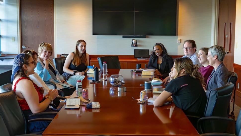 “This initiative wasn't just about reading any book; it was about selecting a piece that resonated deeply with our University life and American democracy,” says Lindsi Reyes ’26, a student member of the reading group. “The choice of book, along with the intimate setting of President Beasley's home, with her inviting pillows, created an environment where genuine connections could flourish.”