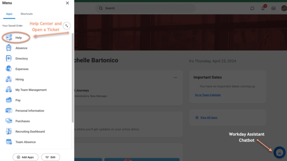 - Explore the Help Center (listed as "Help" in your Workday menu): How-to articles are available by topic.